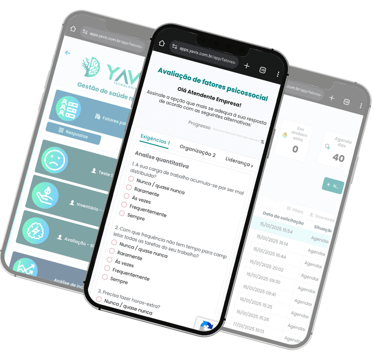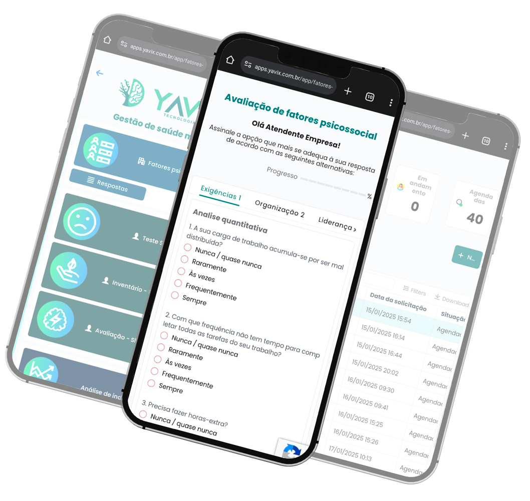 A Yavix simplifica a gestão da saúde mental no ambiente de trabalho, garantindo conformidade legal e bem-estar para sua equipe.